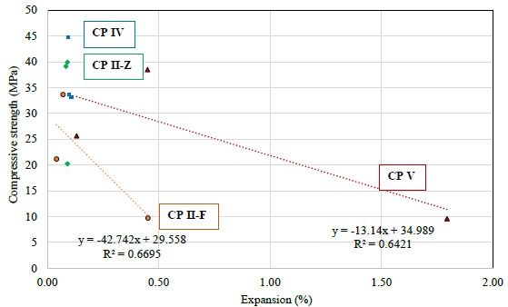 | Figure 5. Correlation between compressive strength and expansion | ||||