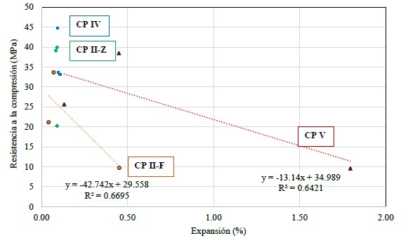 | Figura 5. Correlación entre resistencia a la compresión y expansión. | ||||