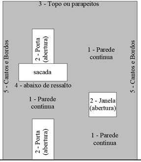 | Figura 2. Regiões tipificadas da fachada Fonte: Gaspar e Brito (2005) - modificado pelo Autor | ||||