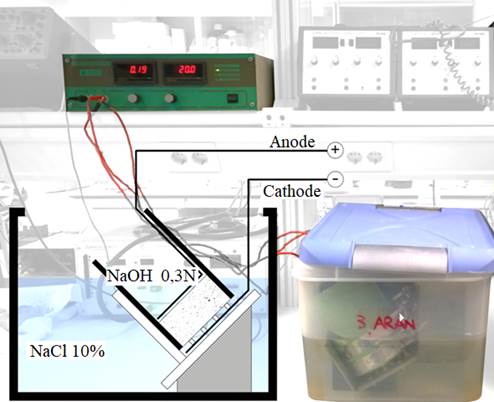 | Figure 3. Chloride migration in concrete. Test scheme according to the NT Build 492 standard. | ||||