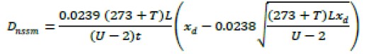 onde U é o valor absoluto da tensão aplicada, em volts; T é o valor médio da temperatura da solução anódica em ºC, medida no início e no final do ensaio; L é a espessura da amostra em mm; xd é o valor médio da frente de penetração em mm; e t é a duração do ensaio em horas.