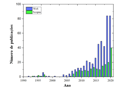 Para a realização do trabalho, as bases de dados Scopus e Web of Science (WoS) foram consideradas de maior importância (mas principalmente da Scopus) no desenvolvimento da análise bibliométrica para a pesquisa bibliográfica, contemplando um período de busca entre janeiro de 1990 e novembro de 2020.