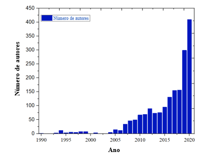 | Figura 3. Número de autores por ano, 1990-2020. | ||||