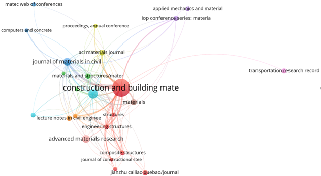| Figura 8. Mapa bibliométrico baseado nas citações dos periódicos mais relevantes sobre o tema ‘concreto com adição de borracha’ | ||||