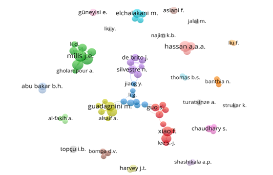 | Figure 6. Co-authorship diagram based on ‘rubberized concrete’ publications | ||||