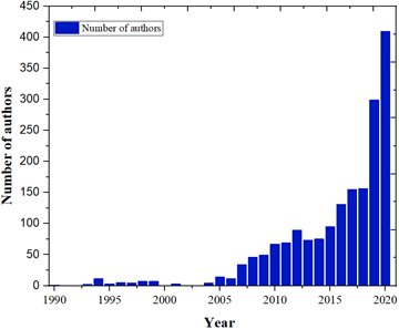 | Figura 3. Número de autores por año 1990-2020. | ||||