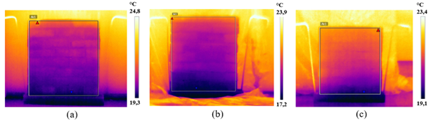 Using the software PSPP2018 the maximum and minimum wall temperatures were determined over the entire test period. The color scales adopted were the same for all images to allow the visual comparison. It is important to note that in this test, the camera provides only the recording of the temperature parameter, not including moisture rate or any other information. Thus, although the images contribute for a diagnosis, they are not necessarily decisive on the analysis