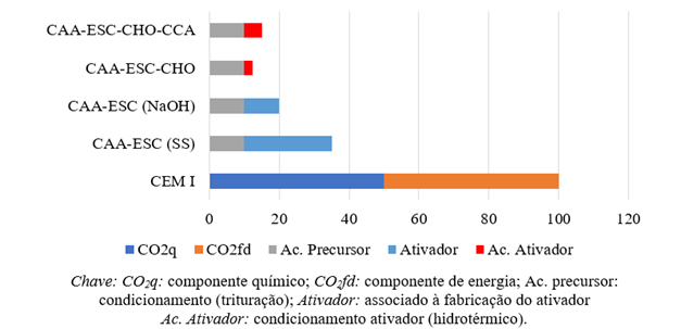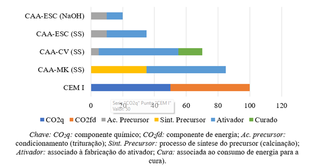 a) Os CAA nem sempre implicam em uma redução drástica nas emissões de CO2 associadas: deve-se considerar que, em alguns casos, as quantidades necessárias de reagentes químicos implicam em uma pegada de carbono comparável aos cimentos Portland.