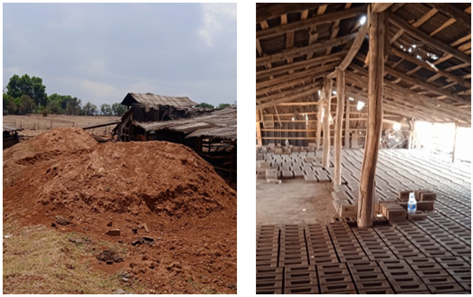 | Figure 3. (a) Quarry with clayey soils in Santiago Undameo; (b) Manufacturing of ceramic and earthen construction components. | ||||