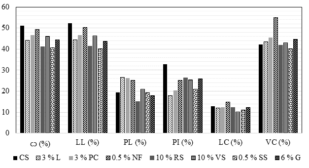 Table 5. Index properties of the original soil and the mixtures with different stabilizers.