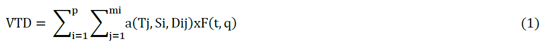 Os valores dos VD são obtidos com o auxílio de ábacos disponíveis na ASTM D6433-2018. Somando-se os VD é possível obter o Valor Total de Dedução (VTD) para os pavimentos analisados com o auxílio da equação 1.