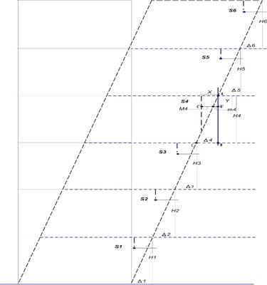 El caso práctico no es un caso general, se plantea específicamente para una estructura con una geometría rectangular bien definida para lo cual se utiliza el modelo de una estructura de seis niveles con altura de cada entrepiso H i = 3.5 m, de vértices flexibles en cada nivel para la generación de las inclinaciones. La finalidad del modelo empleado es únicamente la de recolección de medidas para la obtención del desplazamiento relativo de entrepiso y los esfuerzos analizados son de carácter monodimensional, puesto que, si fuesen de otra manera, habría que analizar una geometría general con esfuerzos de carácter vectorial que pueden provocar desplazamientos en más de una dirección, inducir rotaciones, modos de vibración transversales, longitudinales, torsionales, etcétera. Por lo tanto, es importante mencionar que el análisis queda acotado al esfuerzo monodomensional en la estructura rectangular libre de vibraciones.