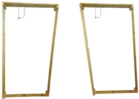 Se empleo un modelo construido de madera con los vértices flexibles para permitir generar las inclinaciones de manera manual e independiente para cada nivel. Instrumentado con un sistema de seis sensores de ultrasonidos HC-SR04 uno en cada nivel suspendido a 45cm del techo del entrepiso y a una distancia de 50cm del muro límite ubicado en la entrada de la fuerza lateral, la finalidad de suspender el sensor en el techo del nivel a analizar es generar un efecto péndulo cuando se produce la inclinación (ver Figura 5). El sistema solo requiere de una simple calibración con el eje vertical de referencia. El sensor no sufrió rotaciones durante la medición, la aproximación de péndulo es para oscilaciones pequeñas, el ángulo subtendido entre el emisor ultrasónico, el punto de contacto en la estructura y el receptor del eco es prácticamente cero. El sensor conservó en todo momento la vertical durante la medición, de tal forma que la estructura es la que se mantuvo oscilando no obstante en el uso del péndulo puede haber cambios de fase que alteren la medición.