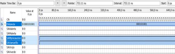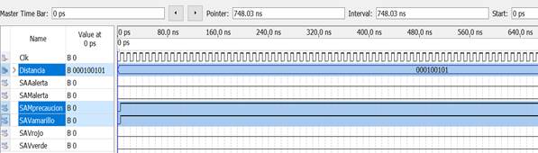 | Prueba | Δ(cm) | Pertenece | SAAalerta | SAV verde | SAV amarillo | SAV rojo | SAM precaucion | SAM alerta | ||||||