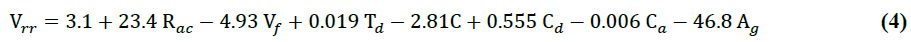 Haciendo el análisis de las ecuaciones de regresión para la variable cualitativa, la cual en este estudio es el tipo de experimento, se pueden determinar cuáles son las variables experimentales que tienen poder explicativo sobre la variable de respuesta (ver ecuaciones 1 y 2). Esto es posible determinarlo por las variables que cuenten con coeficiente positivo, las cuales que en este caso son el ancho de fisura controlada, la concentración de NaCl y la corrosión acelerada. Estas ecuaciones fueron obtenidas con los datos con que se trabajan en este estudio mediante el uso de Minitab.
