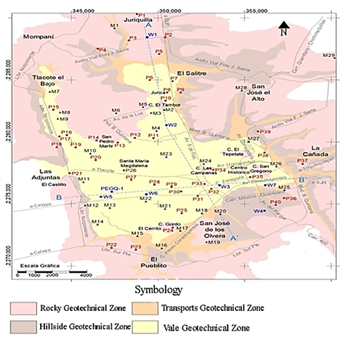 | Figure 3. Geotechnical zones in the city of Querétaro (Álvarez et. al., 2017). | ||||