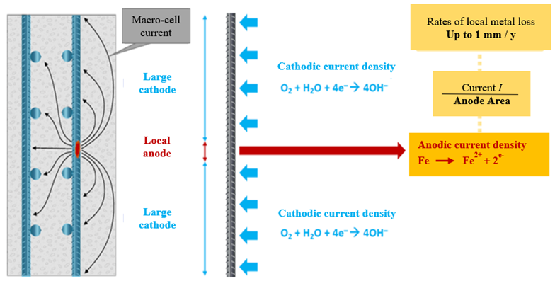 | Figure 2. Adapted from Angst. The anode and cathode are of similar size in carbonation-induced corrosion. | ||||