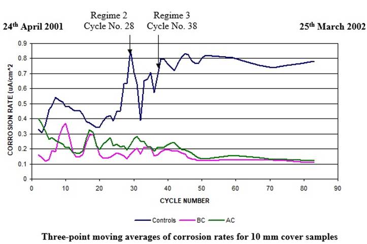 In summary, for marine, or civil engineering structures exposed to de-icing salts, active corrosion inhibitors are not the optimum solution to mitigate existing corrosion.