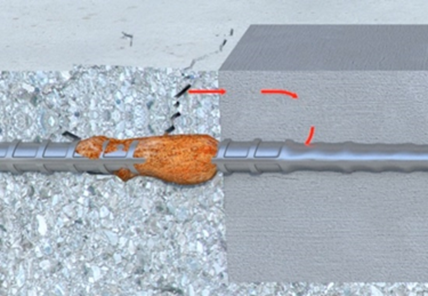 Por lo tanto, especialmente en caso de corrosión de la armadura inducida por cloruros, la reparación del concreto con morteros de reparación de parches por sí sola, podría no proporcionar la eficacia deseada a largo plazo de la reparación.