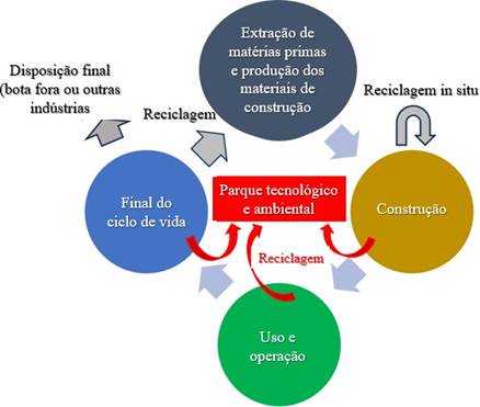 | Figura 1. Modelo de extração, construção, operação e gestão de resíduos em obras baseadas na economia circular. | ||||