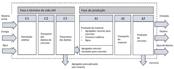 | Figura 4. Modelo para análise do ciclo de vida do concreto reciclado (Mostert et al., 2021). | ||||