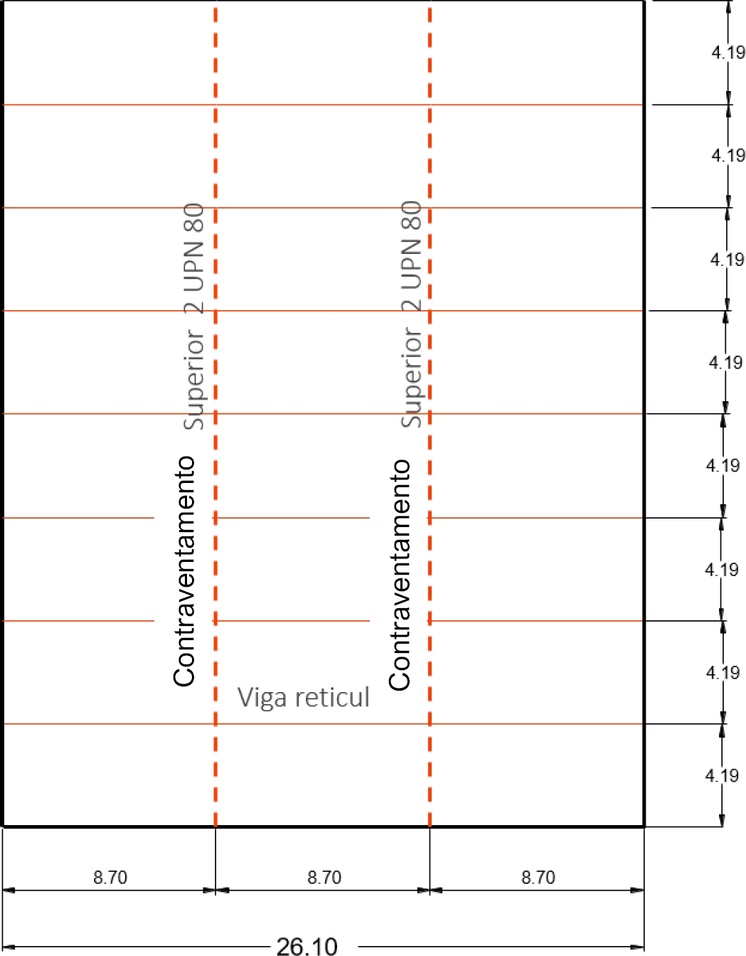 Ao mesmo tempo, para reforçar esse conceito, foram propostas vigas de contraventamento superior com dois perfis UPN 80 para evitar a flexão lateral perpendicular ao plano da viga (figura 5).